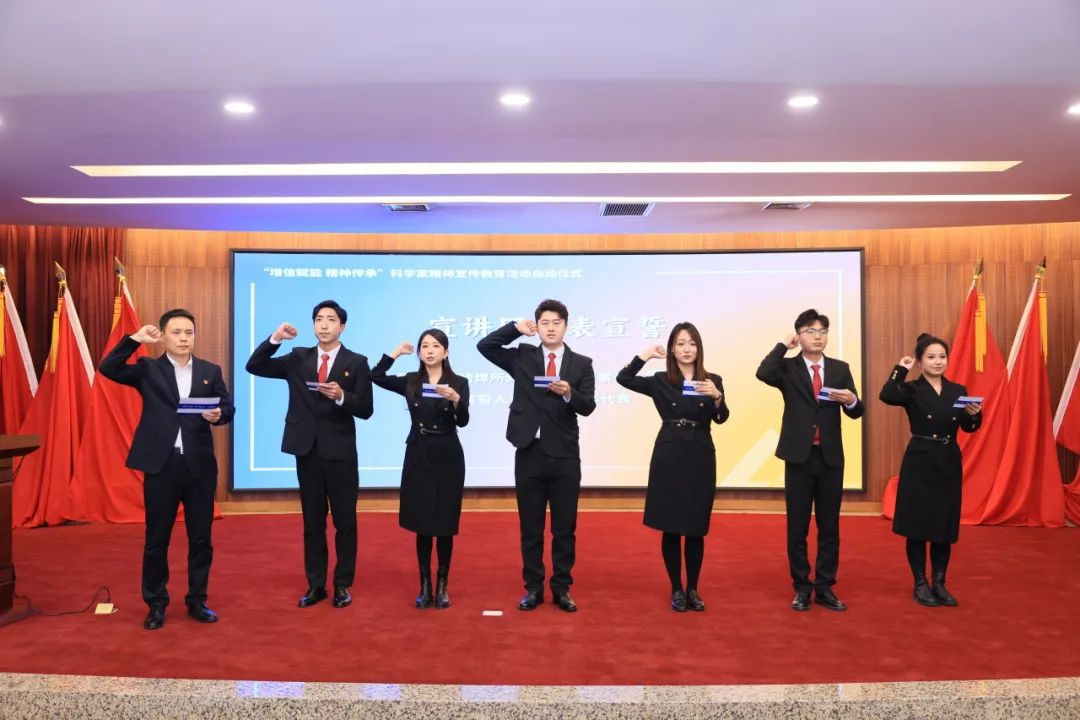 為大力弘揚科學(xué)家精神,彰顯集團科技創(chuàng)新國家隊使命擔(dān)當,會議啟動“增信賦能 精神傳承”科學(xué)家精神宣傳教育活動,李玉鑫為“尚學(xué)揚志 焊衛(wèi)匠心”宣講團成員頒發(fā)聘書,宣講團團長雷振帶領(lǐng)哈焊所青年代表進行宣誓。